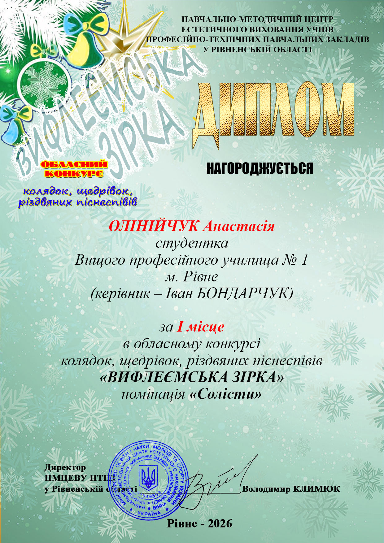 У нашому закладі освіти відбулася новорічно-Різдвяна програма «Різдвяна зірка перемоги!», яка об’єднала здобувачів освіти та працівників у теплій... Детальніше