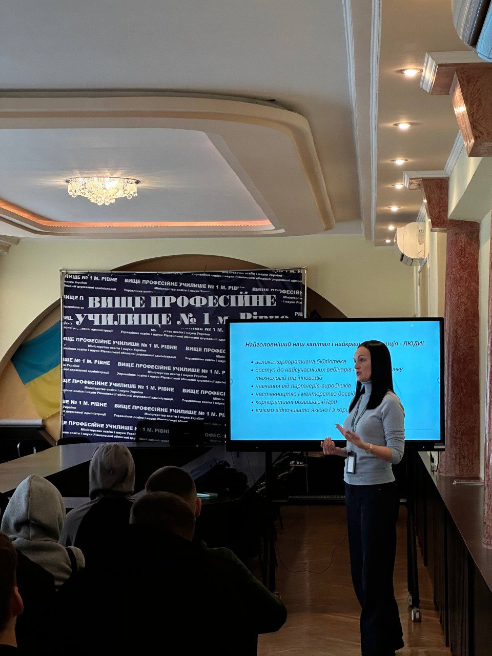 У рамках співпраці Вищого професійного училища №1 м. Рівне та ТОВ «КЛЕЙБЕРІТ-УКРАЇНА», наш заклад відвідали директор підприємства Тетяна КРАВЕЦЬ та інженер-технолог Валентин ПІДГОРНИЙ... Детальніше