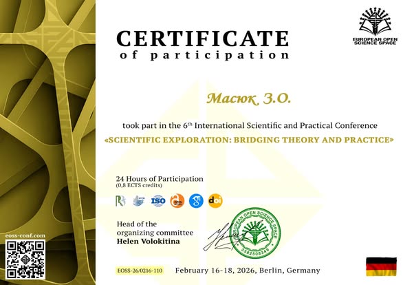 Викладач спецдисциплін ВПУ №1 м. Рівне Масюк З. О. взяла участь у VI Міжнародній науково-практичній конференції «SCIENTIFIC EXPLORATION: BRIDGING THEORY AND PRACTICE», що відбулася 16–18 лютого 2026 року... Детальніше